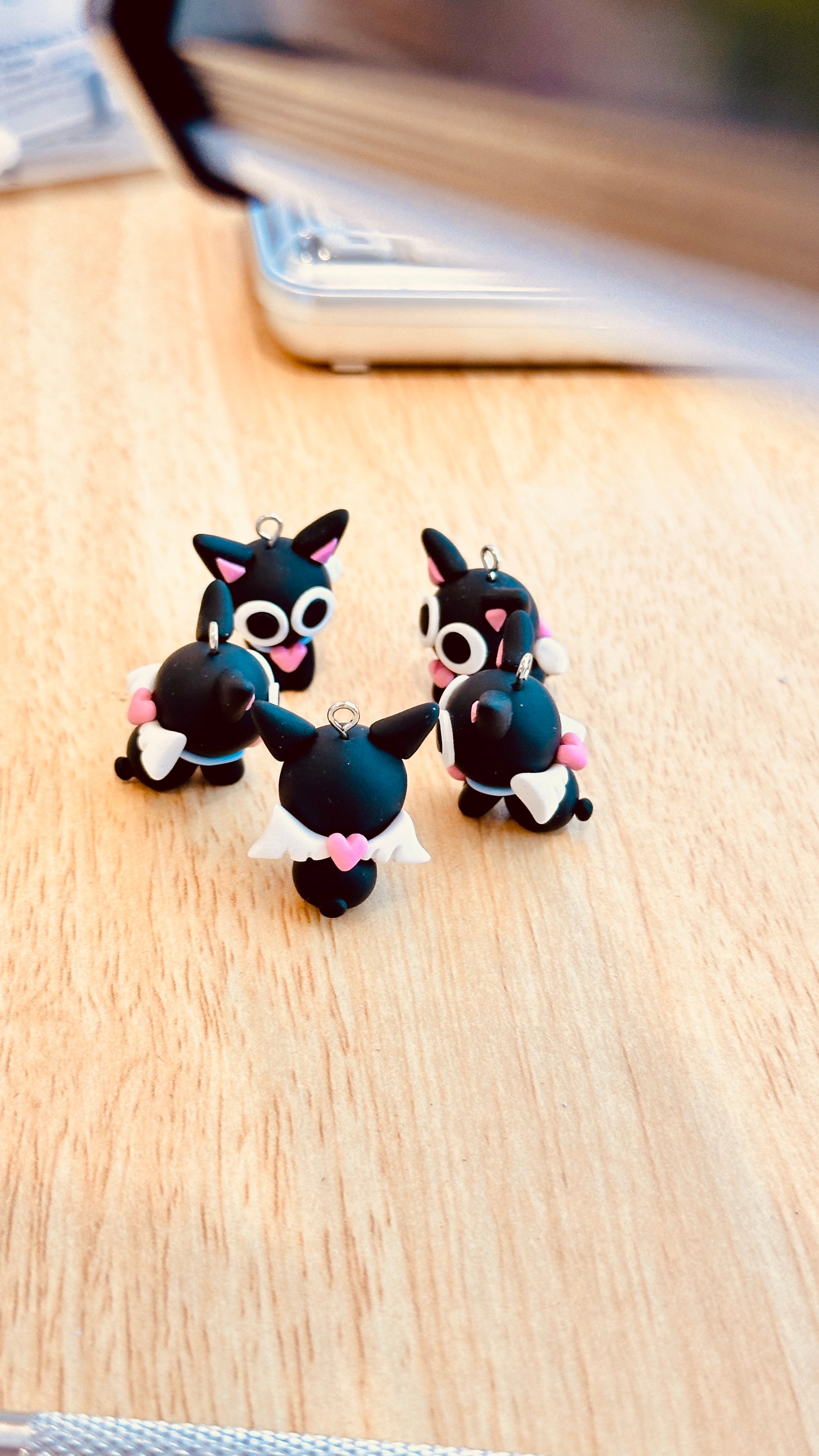 This adorable handmade keychain is crafted from high-quality polymer clay with delicate wings and a sweet expression.