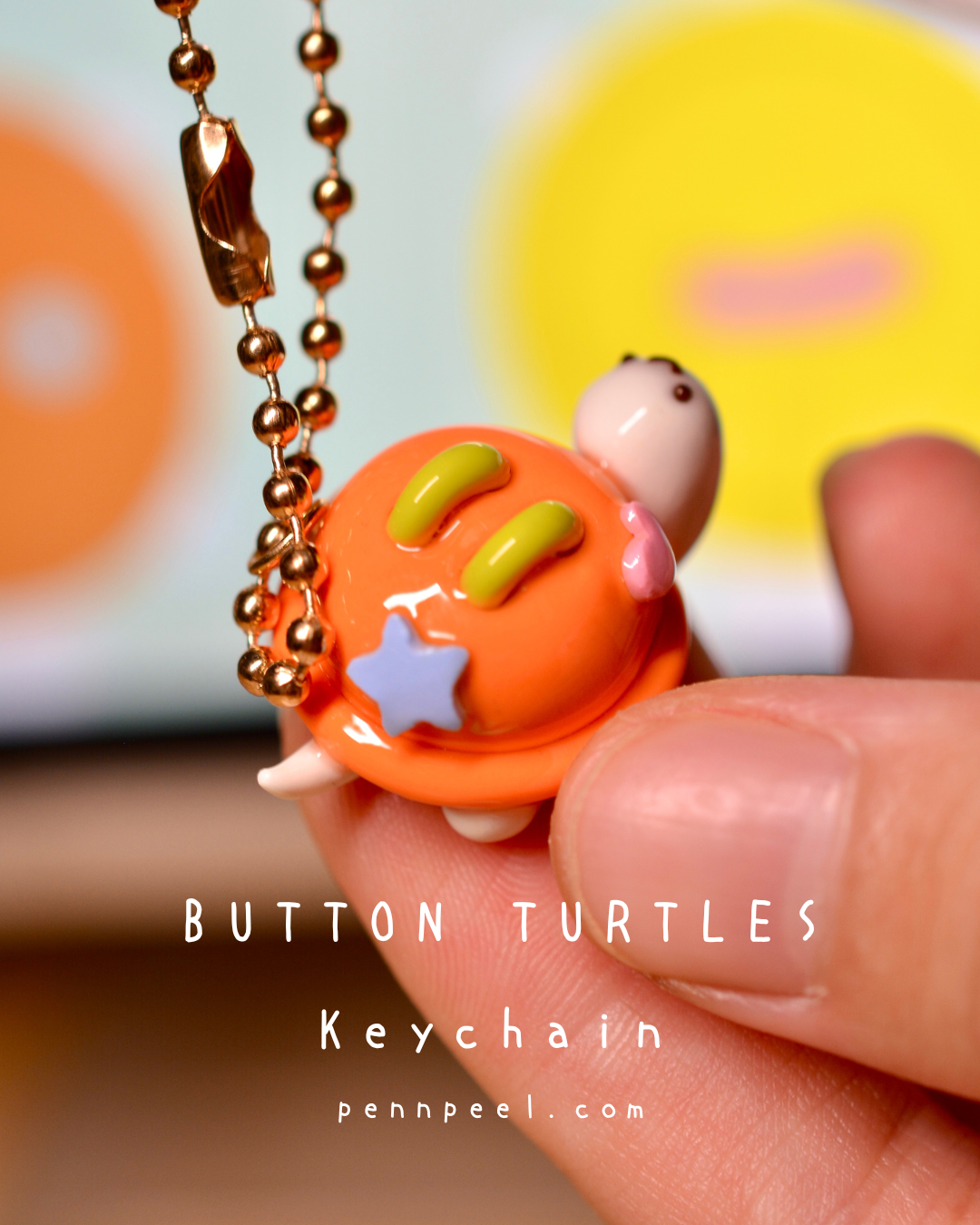 Button Turtle Keychain - Vibrant Orange 🧡🧡🧡