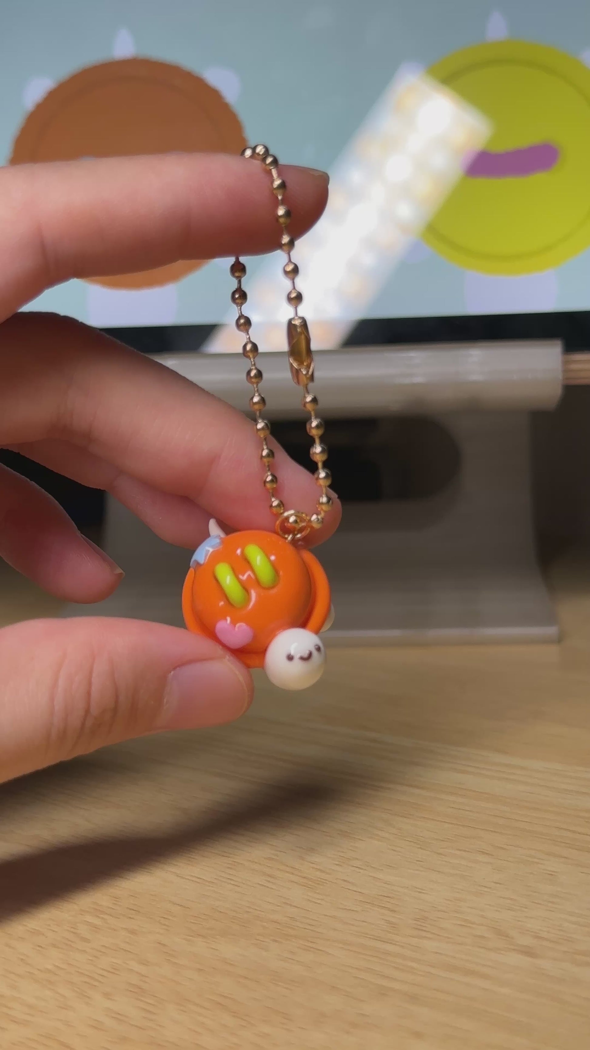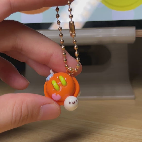 Spark your enthusiasm with the Vibrant Orange Button Turtle Keychain. This energetic, handmade turtle features a lively orange shell with a unique cute element, ready to infuse your day with creativity and bold cheer.